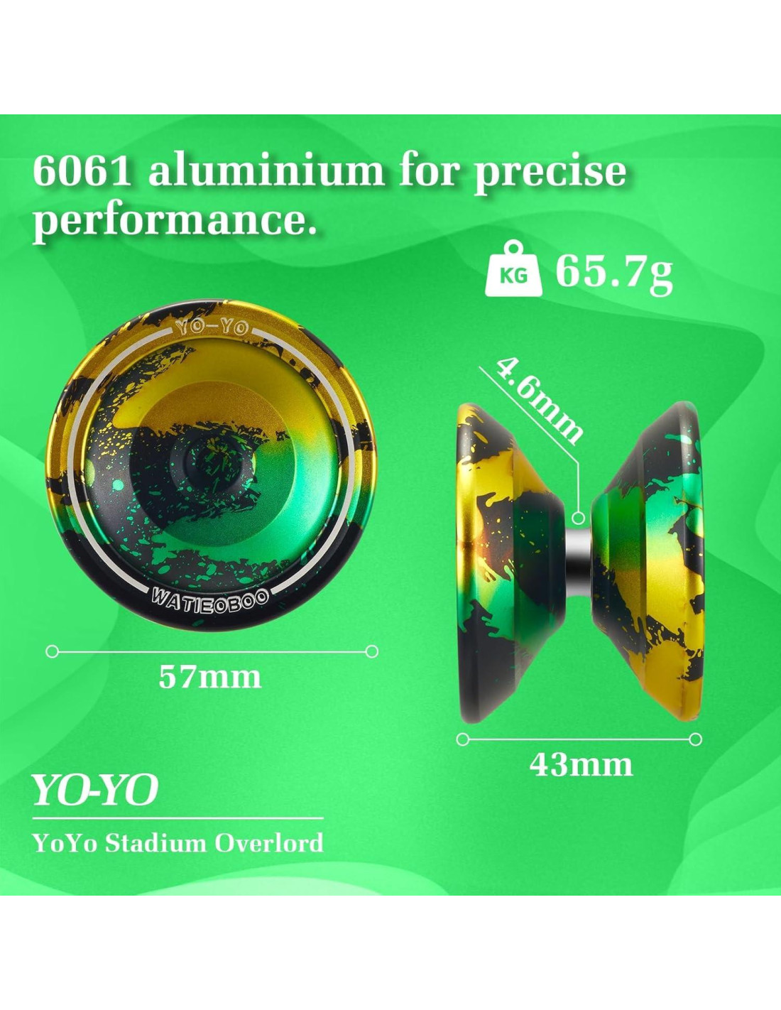 - DE PRINCIPIANTE A AVANZADO EN YOYO: El Yoyo Profesional WATIEOBOO puede cambiar rodamientos según sea necesario. El enfoque en forma de U no tiene respuesta, y el yoyo no puede regresar automáticamente después de ser lanzado. Necesitas usar un truco llamado 'binding' para recuperarlo. La Tecnología de Cuerda de Estilo (1A, 3A, 5A) proporciona un giro potente, excelente estabilidad y una gran sensación de cuerda. Adecuado para jugadores intermedios a avanzados y jugadores profesionales.