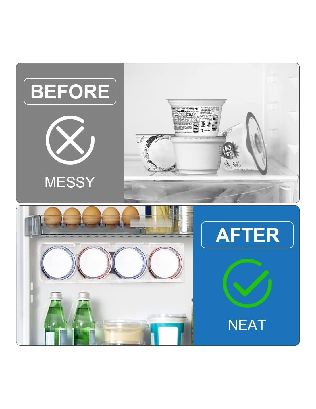 - AHORRO DE ESPACIO - Este organizador de yogur para nevera está especialmente diseñado para minimizar el espacio utilizado para el yogur. Simplemente instálelo y despídase del desorden.
