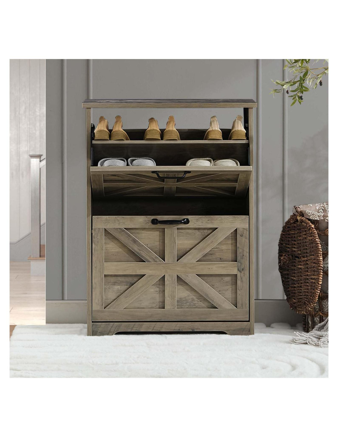 - [Cajones Elevables que Ahorra Espacio] Cuenta con cajones elevables que sostienen múltiples pares de zapatos sin ocupar espacio adicional en la entrada. Los paneles frontales ocultos mantienen el armario con un aspecto ordenado y su entrada libre de desorden