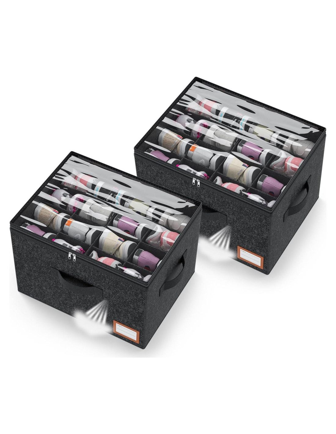 - [VENTANA TRANSPARENTE Y MANIJAS FUERTES] Fácil de encontrar los zapatos que necesitas a través de las cubiertas transparentes. Diseñado con tres manijas extra fuertes, puedes usarlas como cajas de almacenamiento en cualquier momento y se pueden colocar fácilmente en el maletero de tu auto.