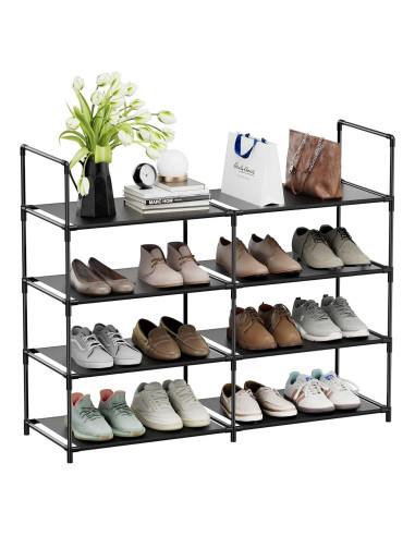 - CAPACIDAD DE ALMACENAMIENTO: el organizador de zapatos de 4 niveles puede contener hasta 16-20 pares de zapatos para adultos, este estante para zapatos no solo es para zapatos, sino también para zapatillas, tacones, botas y pantuflas.